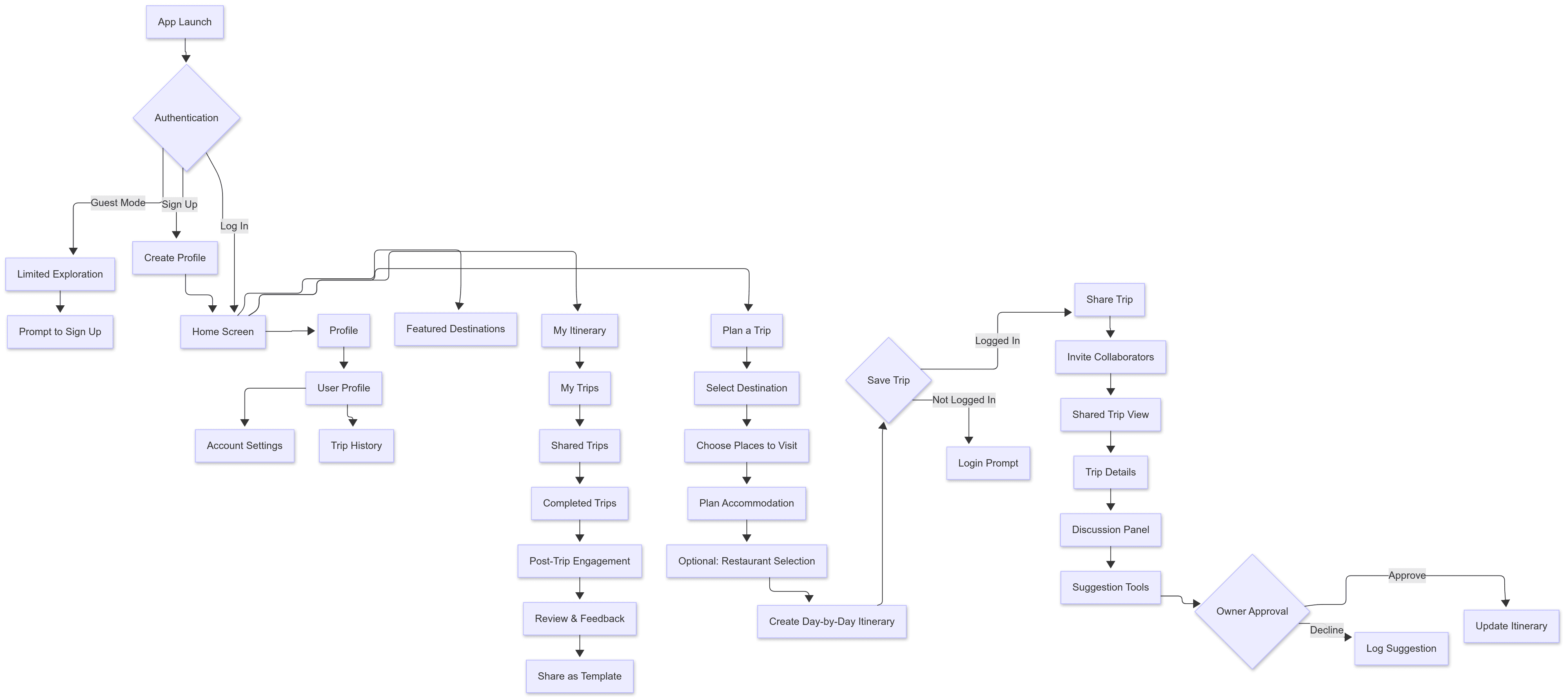 I mapped the complete user journey—from onboarding to post-trip engagement—ensuring an intuitive flow.